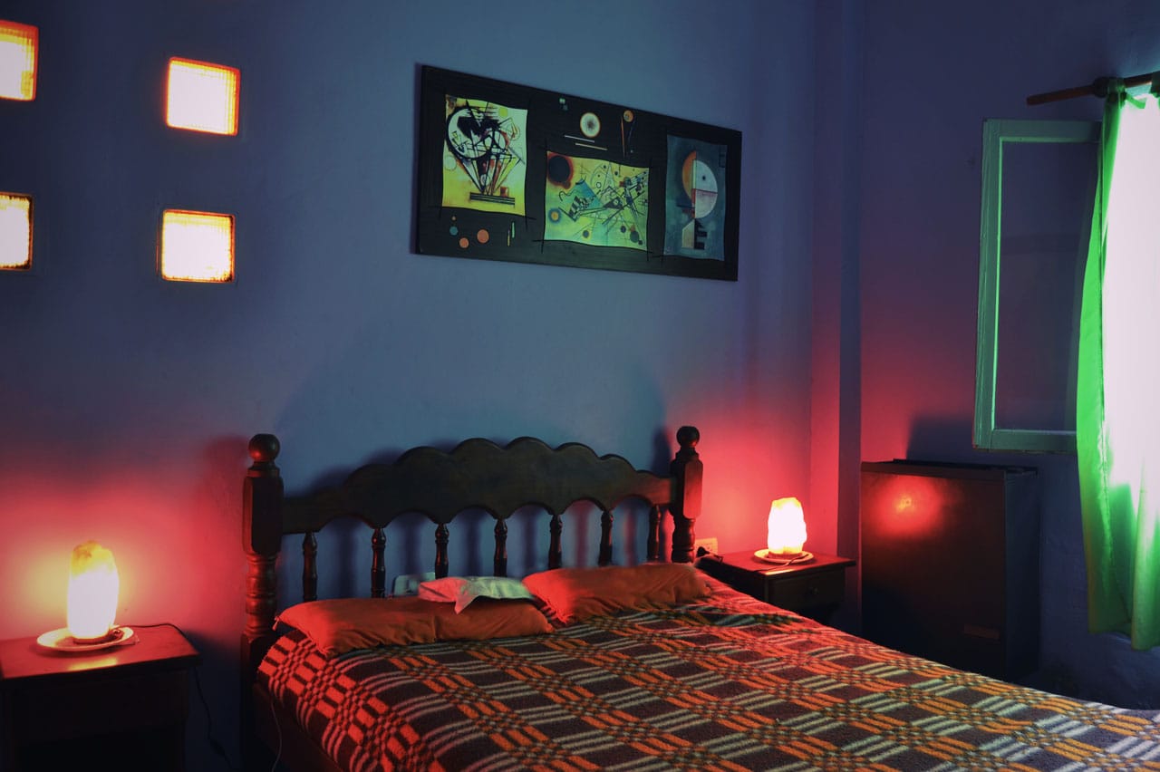 La habitación cuenta con lamparas de sal del Himalaya contribuyendo al clima que favorece la calma, la distensión y la respiración.