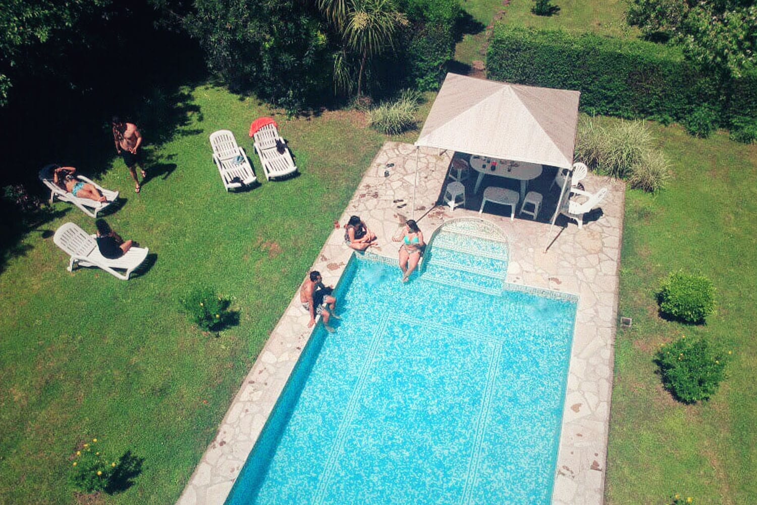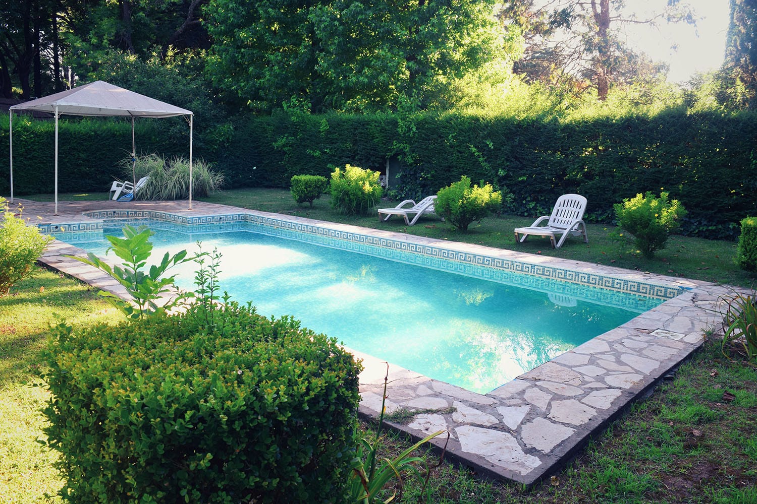 La casa está dispuesta sobre un terreno de 1500m² de puro parque rodeado de flores, con una casa de campo central de 100m² con techo tejado a dos aguas. Cuenta con dos dormitorios, comedor, desayunador, quincho, parrilla, garage, amplio parque con piscina de 9x4mts. Además de los servicios básicos de electricidad y gas, cuenta con sistema de seguridad Prosegur con control remoto, conexión a internet wifi, cablevisión, equipo de audio, teléfono, Smart TV, ventilador, heladera y total amoblamiento.